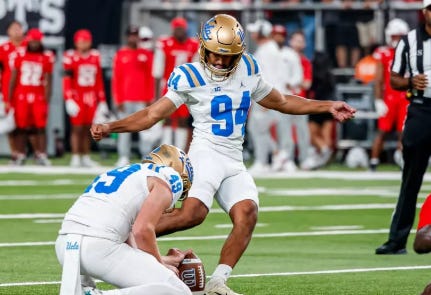 Mateen Bhaghani hit all his kicks, Will Karroll’s two punts were both solid and put UNLV inside its own 20-yard line (not that it mattered much). Again, it didn’t end up impacting the game much, but it’s good that at least one aspect of UCLA is running on all cylinders.