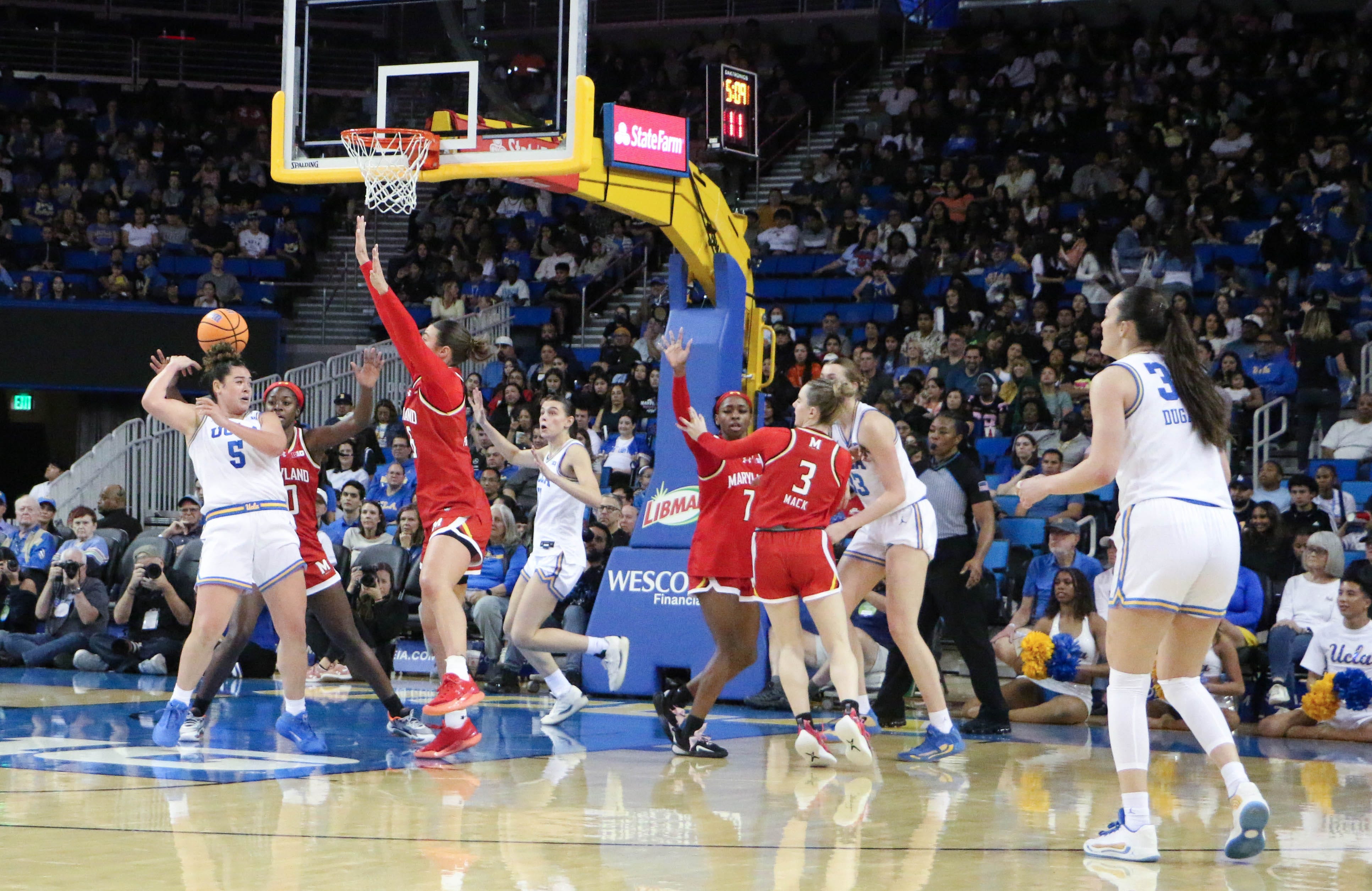 For a blowout, things are different. You have to find a narrative where you can, especially once both teams recognize the situation and adjust their level of play accordingly. Which is essentially what happened for the entire second half of UCLA’s 97-67 victory over Maryland. After a quick burst to start the half, both teams recognized the situation and adjusted accordingly. Lauren Betts only had to play six minutes in the second half, sitting in favor of her sister Sienna, while the Bruins tried out a bevy of different looks to get some practice in.