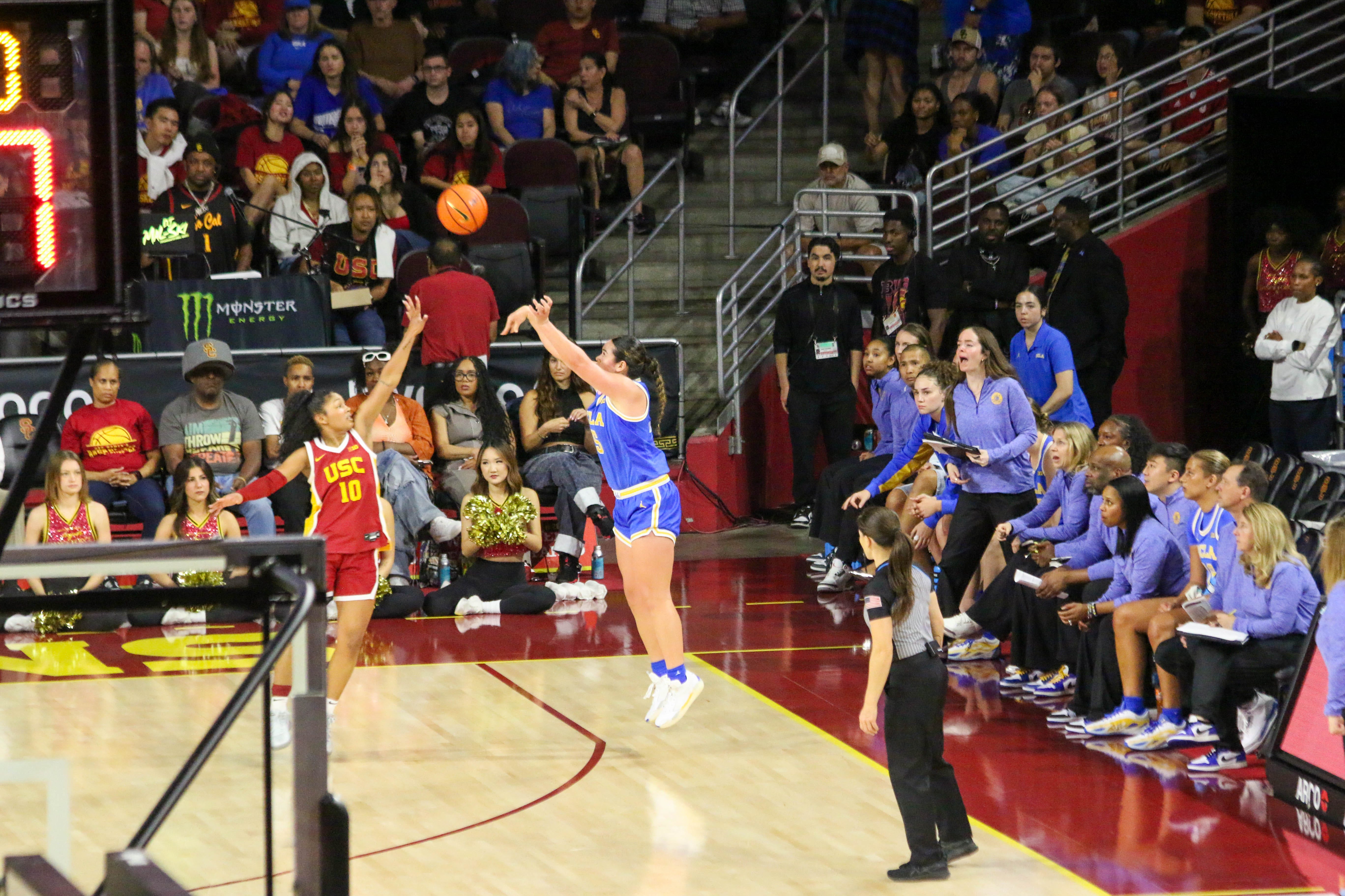 When the game tipped off, Lauren Betts won the jumpball and, 30 seconds later, Gianna Kneepkens scored the first points of the game with a jumper in the paint. While UCLA never trailed as a result, Leger-Walker ensured the Trojans wouldn’t tie the game when she drove for a layup with 8:17 to go and gave the Bruins a 4-0 lead.