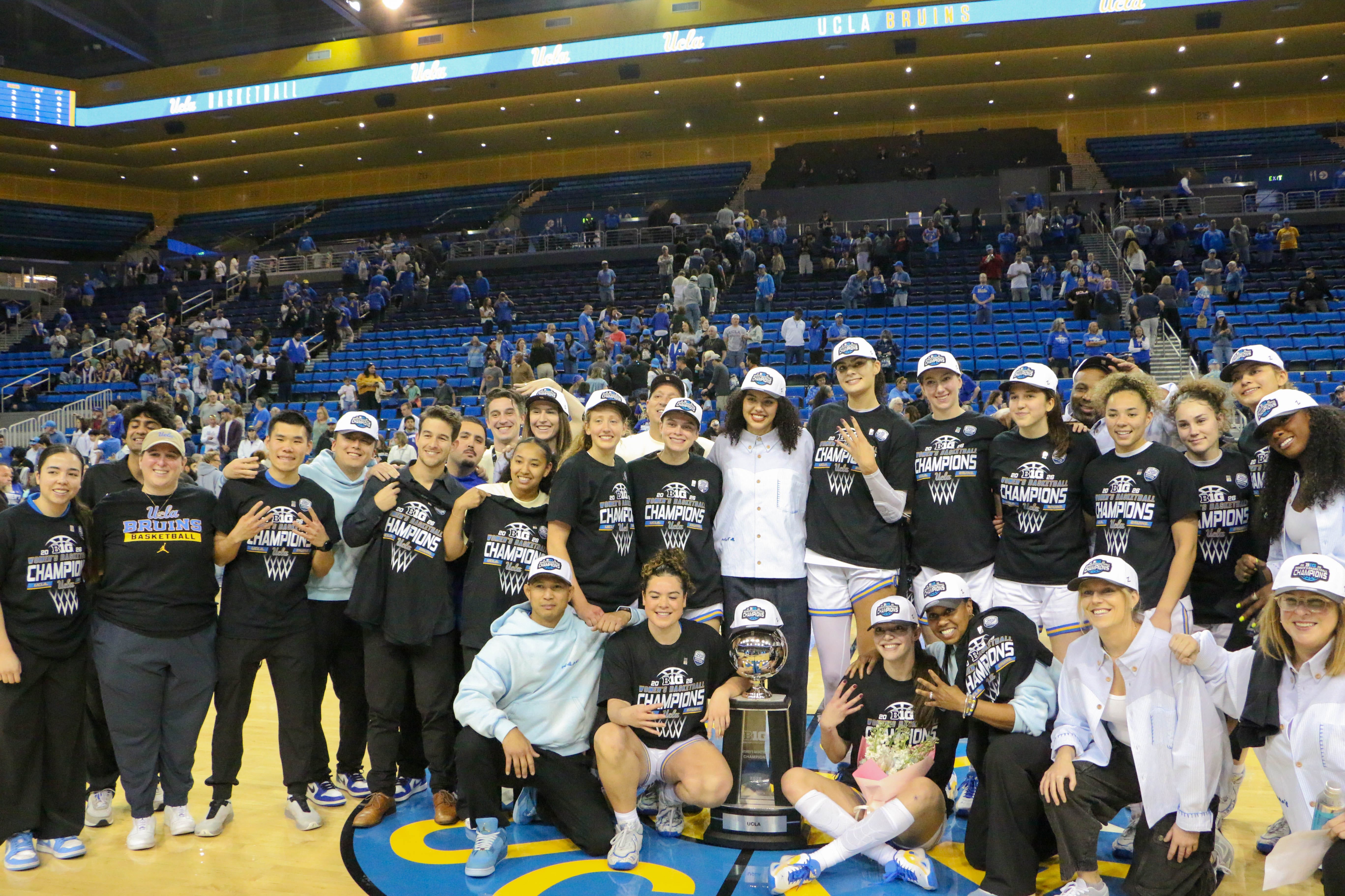 After the game, bedlam ensued as the Bruins were presented with the Big Ten regular season trophy and they took it around Pauley to thank the fans.