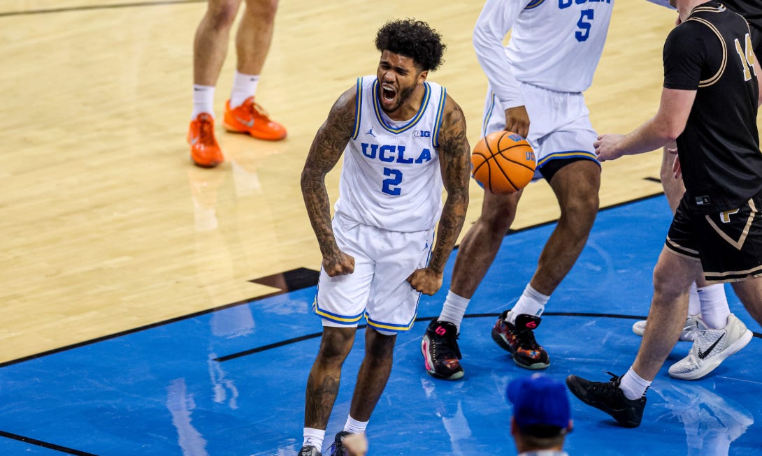 What also helped UCLA was its offense, which continues to be a major strength of this squad. Donovan Dent was sensational, as mentioned, but UCLA got key contributions from the rest of the starting lineup, with Tyler Bilodeau scoring 14 points, Eric Dailey adding 12, and Trent Perry showing well in a big game with 11 points. The fact that UCLA won this game without a single bench point doesn’t feel sustainable (again, not having Skyy Clark definitely hurts in that regard), but it doesn’t take away how ruthlessly efficient the Bruins were. UCLA shot 57% from the field, hit nine of their 20 three-point attempts, and, perhaps most impressively, outscored the Boilermakers 30-28 in the paint, a sign that this was not a team carried by unsustainable outside shooting. And since I’m throwing stats into the pile here, the Bruins got an assist on 21 of their 29 made baskets, a good indication of their unselfish play on the offensive end.