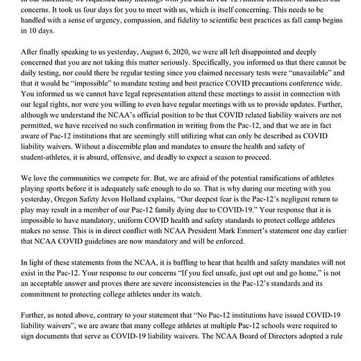 Well written. A complete failure by those paid the big $$ - Larry Scott, AD’s, and coaches to develop a comprehensive plan protecting players (“student athletes” as we’re repeatedly told) There should have been multiple contingencies in place. Maybe season still would have been postponed but at least they would’ve tried