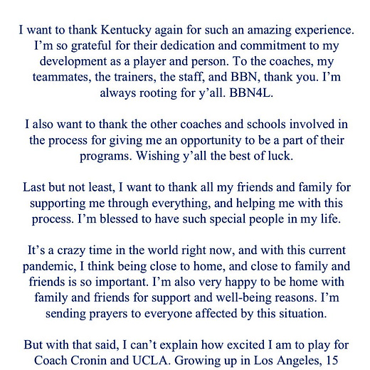 This seems like a huge get! Congrats to Coach Cronin, who continues to impress even during this crazy time... and of course, welcome back to LA, Juzang!