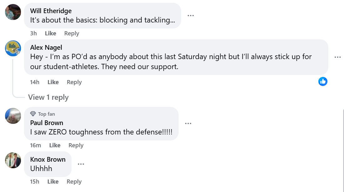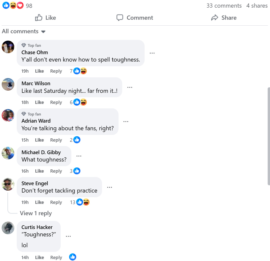 You know things are bad when fans with Facebook’s Top Fan designation start in on you. Take Chase Ohm’s reaction: